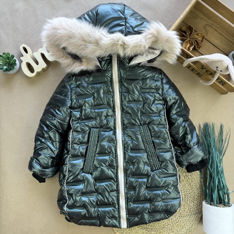 Зимняя куртка- пальто с натуральной опушкой. Производство-Украина! Харьков! Очень теплая и качественная! Верх-болонь, наполнитель- силикон 100, подклад- флис. Манжет в рукавах- трикотаж. Мех на капюшоне отстегнут. Размеры: 110- по набору 28- рукав 41/длина 54/полуобхват 39 116- по бірці 30- 44/57/40 122- по бірці 32- 45/58/42 128- по бірці 34- 48/62/44 Цена: 1300 грн
