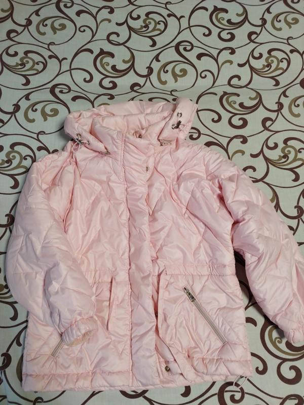 Красивая нежно розовая куртка, тоненькая, рукавчики грязные следует постирать,