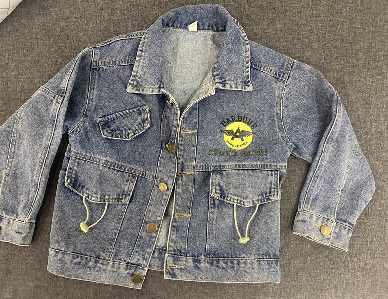 Яркая, модная джинсовая куртка как на мальчика так и на девочку. Оверсайз, широкий размер 110см