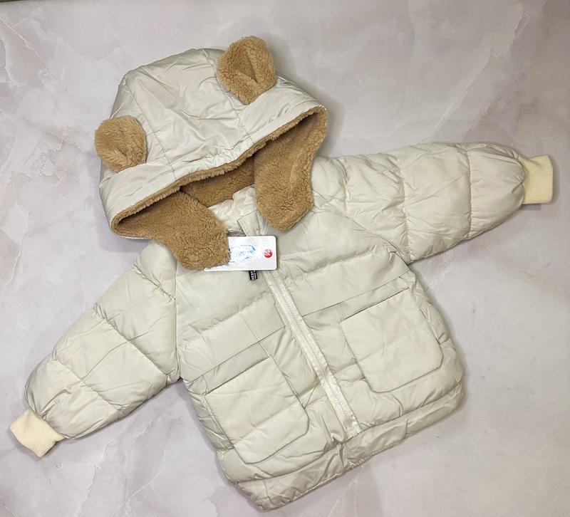 Белая молочная бежевая и черная детская куртка ребенка девочки мальчика мальчика мышка с у...