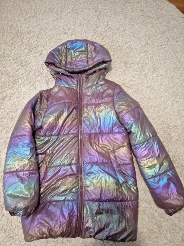 Курточка очень теплая удлиненная и удобная. Длина 70 см, плечи от шва до шва 38 см, в груди 48 см, рукав от шва 60 см. Состояние на фото. единственный дефект-растягивившийся шнурок, что стягивать капюшон, не на что не влияет, свою функцию он выполняет. Размер пишет 140. По факту от 140 до 158, в зависимости от настроек ребенка.