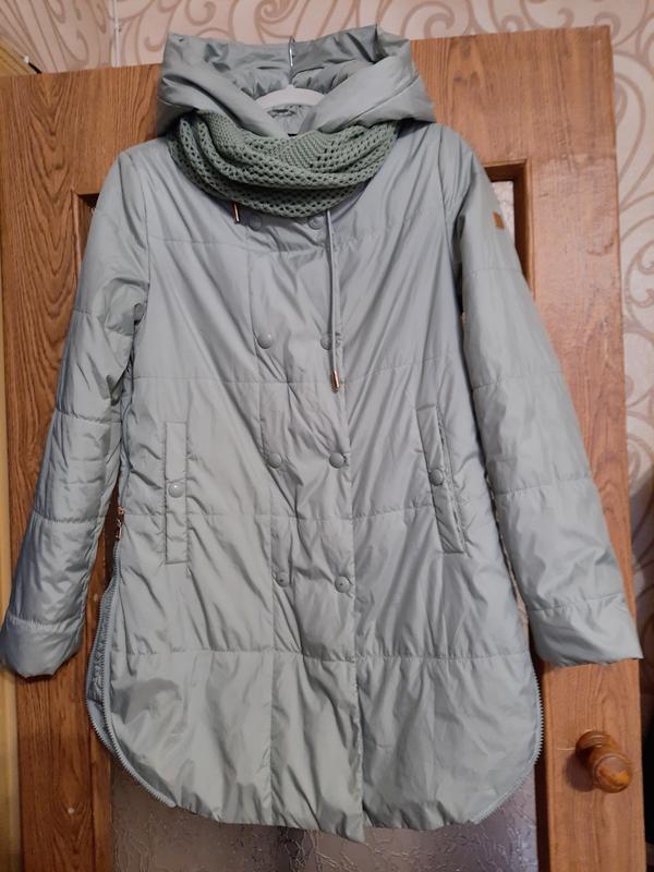 Демісезонна куртка, розмір 42-44. шарф хочуть в комплекті.Ширина по плечах 40, по груді 48, довжина 80, довжина рукава 64.