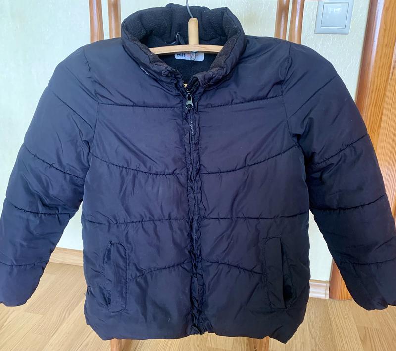 Куртка чорного кольору H&M, без капюшону, тепленька, розм.134, на 8-9 років. Довж.52; шир.40; плечі 32; рукав 47 см.