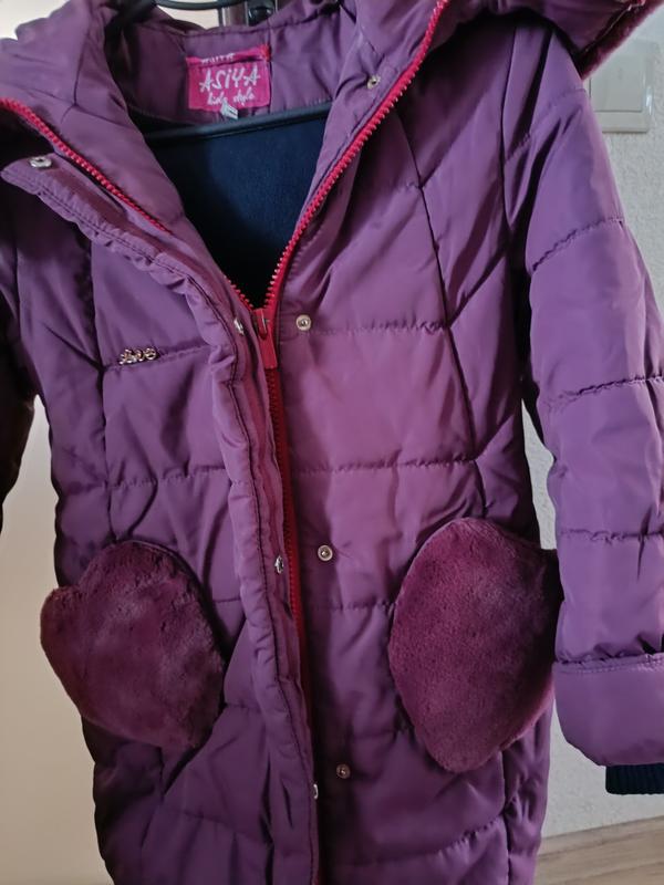 Куртка зимняя для девочки. 8-10 лет. Подкладка по спинке утеплена флисом. Капишон на съемный, мех можно снять. Длина по спинке 68см, рукав 54см, но можно подкатывать, есть манжет, по плечам 37 см. Цвет бордовый, по фото не передаётся