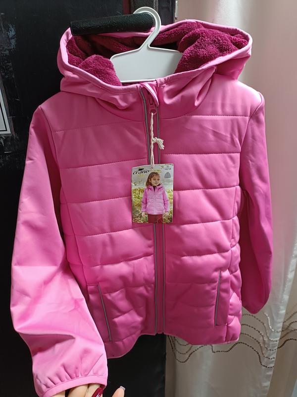 Термокуртка софтшел для дівчинки р 122/128 верх софтшел не промокає утеплена флісом,капюшон хутро, світдовідбиваючі елементи кармани бокові