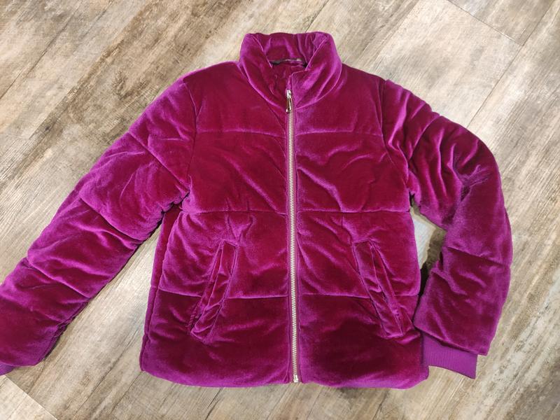 Куртка с утеплителем типа синтепон. Носилы на холодную осень и даже зимой. Цвет очень яркий. Тканина велюр. Длина по спинке 45 см, рукав 48 см с учетом вязаной части. Под рукавами 42 см, внизу пот 40 см, плечи 35 см. Замеры произведены по внешнему виду. Открытка Укр-почтой или Новой почтой.