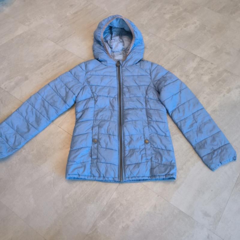Куртка осенняя для девочки. Наполнитель - натуральный пух тонким слоем. Удлиненный фасон. Есть капюшон. Куплена в Германии.