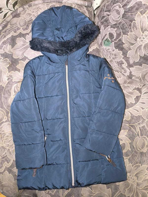зимняя куртка с мехом в капюшоне. замеры куртки с лицевой стороны длина 50см длина рукава от плеча 37,5 с манжетом полуобхват груди 37,5см ширина плечей 30см