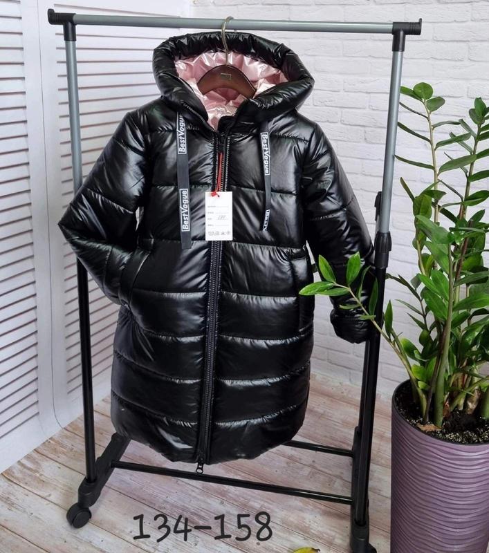 🥰В НАЯВНОСТІ!!! Зимняя куртка для девочки ткань плащевка, наполнитель спиновидный синтепон 300 есть карманы, застегивается на молнию, капишон не отстегивается, рукав можно подвернуть на 5-7 см, очень легкая подкладка травка ОТМЕННАЯ КАЧЕСТВО РЕКОМЕНДУЮ, цвет черный 134(2 шт)-длина 70,пог 40,рукав от плеча 50 +-2 см