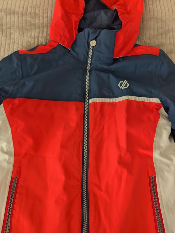 Термо куртка, размер 128 на 7-8 лет. Не могу запечатлеть реальный цвет. Он совсем другой там, где красный цвет, так как он на самом деле кислотно-розовый. Замеры: Длина: 53см Под руками: 42см Рукав:48см Плечи: 34см