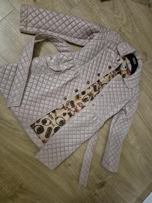 Демисезонная куртка/ плащ для модницы нежно пудрового цвета в идеальном состоянии. На рост 134 см. С карманами, на синтапоне, очень удобная, низ очень необычный, как юбка балерины. Длина рукава от плеча 49см, общая длина 69см, талия 35см.