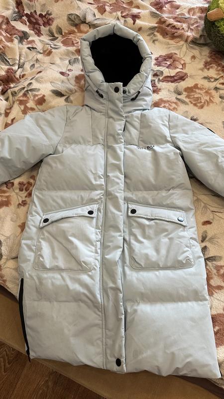 Куртка голубого кольору на дівчинку, є незначні плями. Змійки працюють, дирок немає, все ціле якісне. Матеріал водовідштовхувальний.