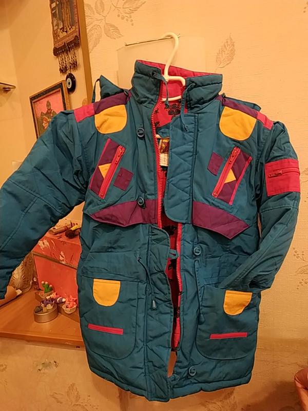яркая куртка, много карманов, с капюшоном, теплая
