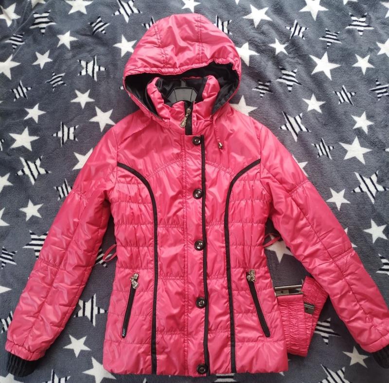 Курточка в хорошому стані, малиновий колір. На осінньо-весняний період. З пасочком. Розмір L Ширина плеча -34 см Довжина рукава - 60 см Довжина куртки -65 см Обхват грудей - 85 см