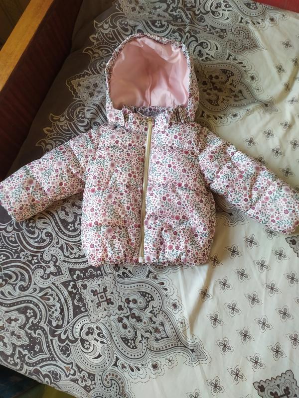 Гарнянка куртка в цветочном принте для принцессы, капюшон отстегивается тепла на весну или осень носили до года 12-18 мес