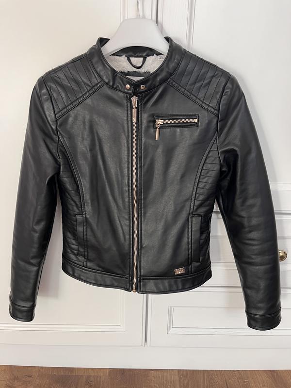 Куртка зі штучної шкіри, всередині утеплена штучним хутром. Дуже мʼяка і стильна