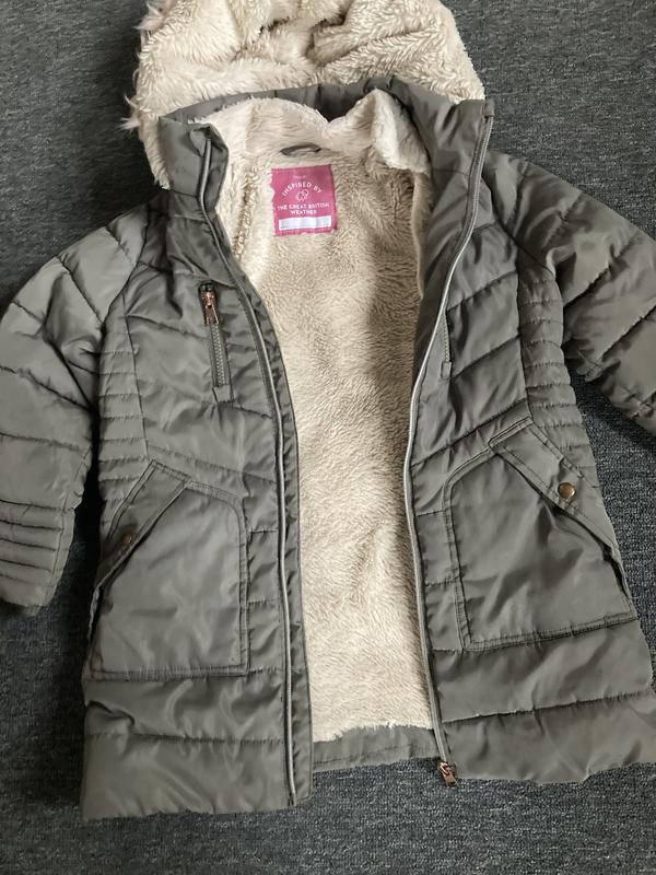 Зимова. Тепла. Ребенку было удобно. Чистенькая. Выстирана. ( из вас только опушку расчесать 😊)