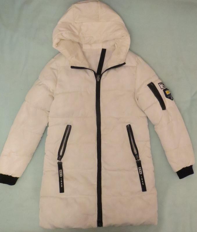 Пальто куртка зимова або на холодну осінь р.152-164, модна, тепла, в гарному стані. Заміри: довжина 82см ПОГ 49см ПОТ 47см плечі 39 рукав 59см з манжетом Пересилаю. Із недоліків є малесенькі плямки, на останньому фото показала. Вони малопомітні.