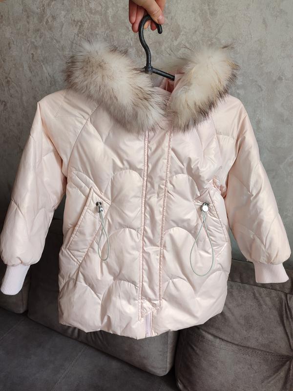 Зимняя куртка для девочки в красивом состоянии.Куртка идет на биопухе.Натуральный мех енота на капюшоне. Размер 110,мы одевали на 5-6 лет.