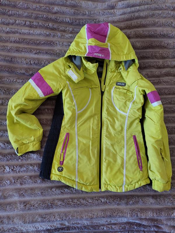 Лыжная яркая курточка для детки. Удлиненная, продуманно все до мелочей для лыжного катания. Желто - салатового цвета в сочетании с розовым и черным, светоотражающие элементы, будете видеть свою малышку свала )))))) не промокает, не продувается, защита от снега, кармашек на замотках, удлиненный манжет. Класна. Каталась несколько дней в одном сезоне