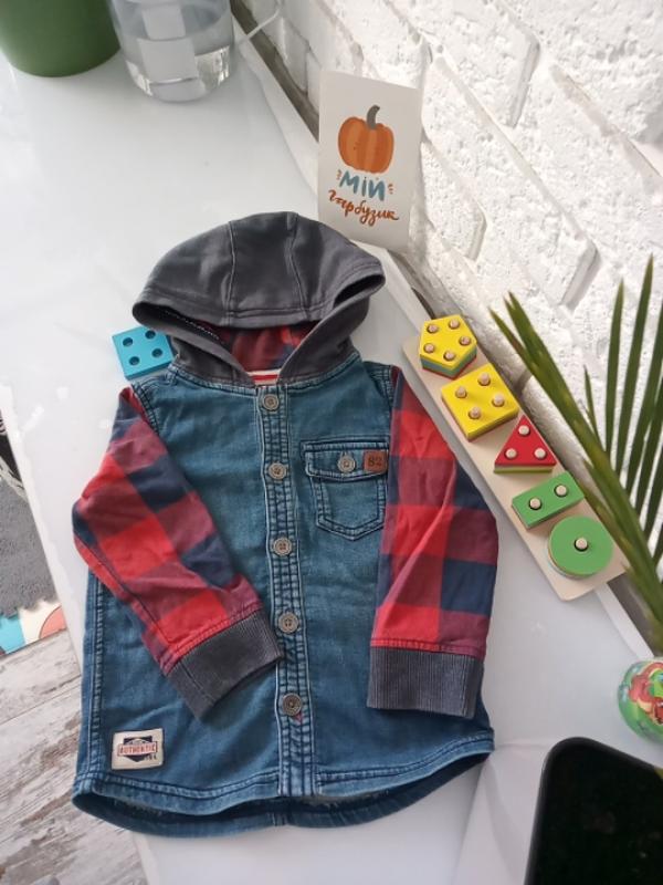 Очень удобная и мягкая джинсовка с коттоновым рукавчиком от next на 12-18 месяцев (рост 86 см.) Заходите на мою стороночку в Shafa! Там вы найдете много интересного для ваших рисунков ❤️