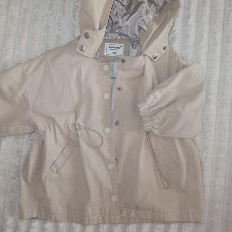 куртка,ветровка,подойдет как на девочку так и на мальчика,молочного цвета, с карманами, затяжки на талии чтобы регулировать талии,размер 100,но подойдет и на большее
