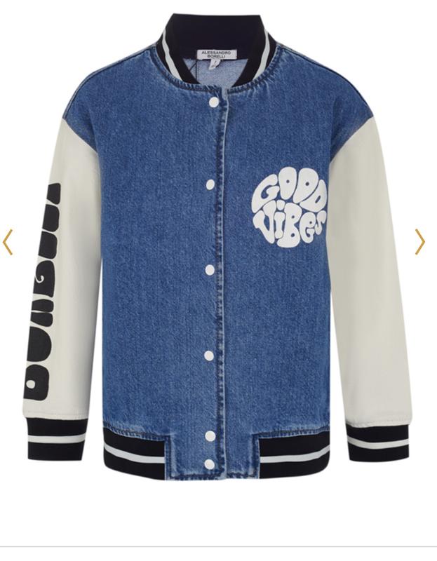 Продам стильный джинсовый бомбер для девочки. Подойдет под любой лук. Есть немного на буквах потертости, но на носку не влияет. На 12 лет, рост 152 Длина 58 Плечи оверсайз 48 Рукав от горла 64.5 Грудь 49
