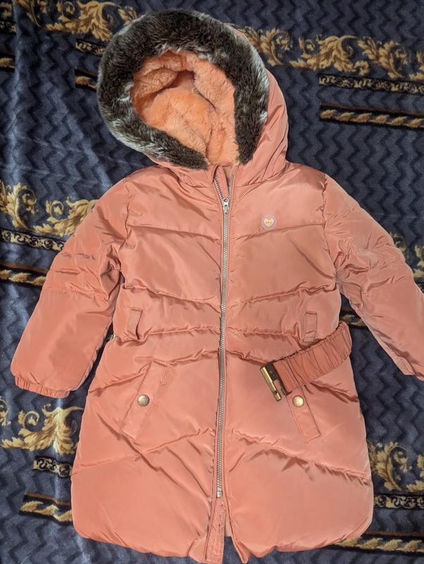 Зимова куртка-пуховик. Размер 98-104. Цвет оранжевый, имеет поясок и капишон теплый. В идеальном состоянии. Наполнение Гусинный пух, очень теплое и легкое. Подкладка мягкая плюшевая. Цена 800 грн.