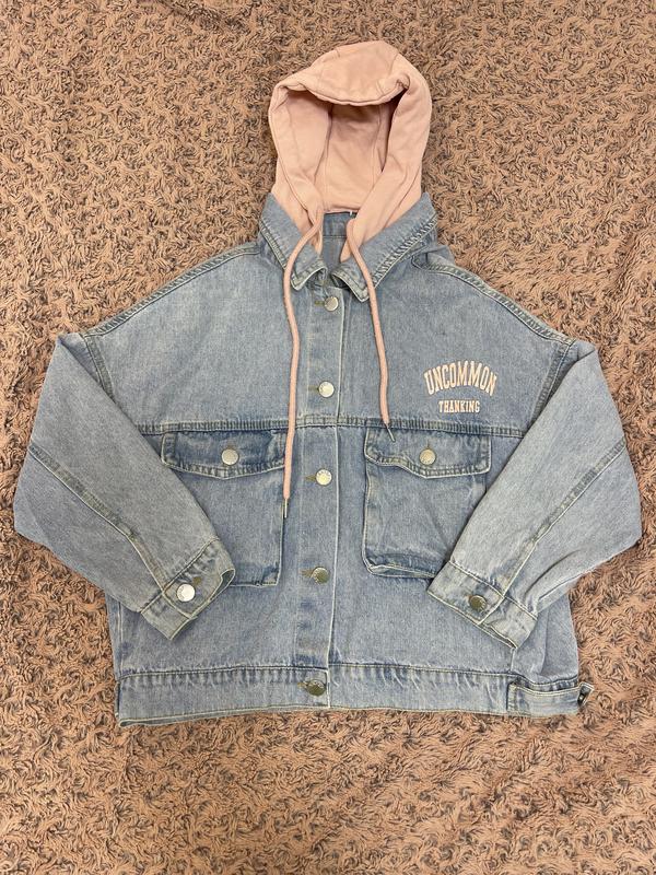Джинсовка для девочек на 140 см капишон от цепляется