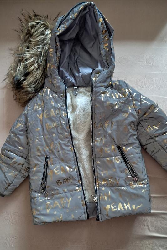 Зимняя куртка на девочку Bebs, термоподкладка, съемный мех, светоотражающая, размер 98.