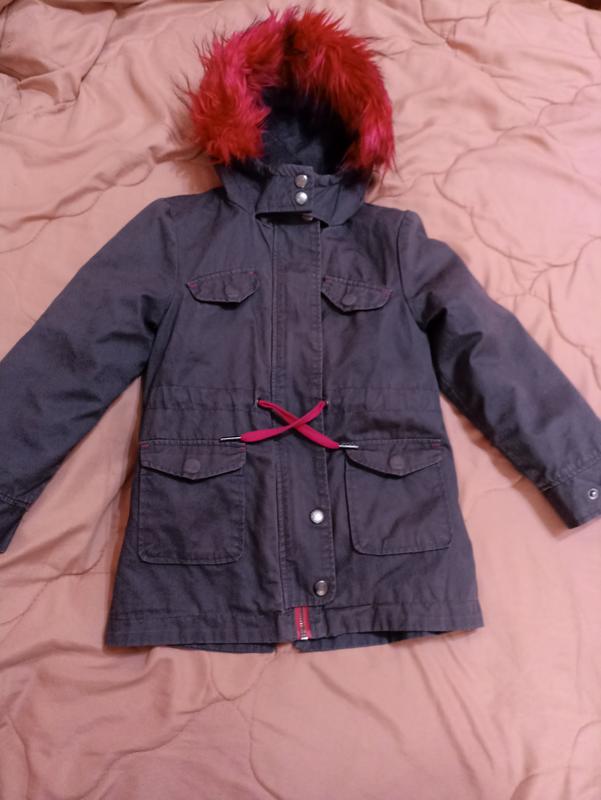 Куртка 3в1 , 1 вариант это как на первом фото серая удлиненная куртка с капюшоном (мех снимается) и внутри утепленная красной. 2 вариант это носить осеннюю серую куртку в виде ветровки 3 вариант красную куртку с середины можно отстегнуть и носить отдельно (фото 3) Получается очень низкая цена как на три варианта ношения и две куртки Осмотрите все фото там есть замеры и видно состояние.