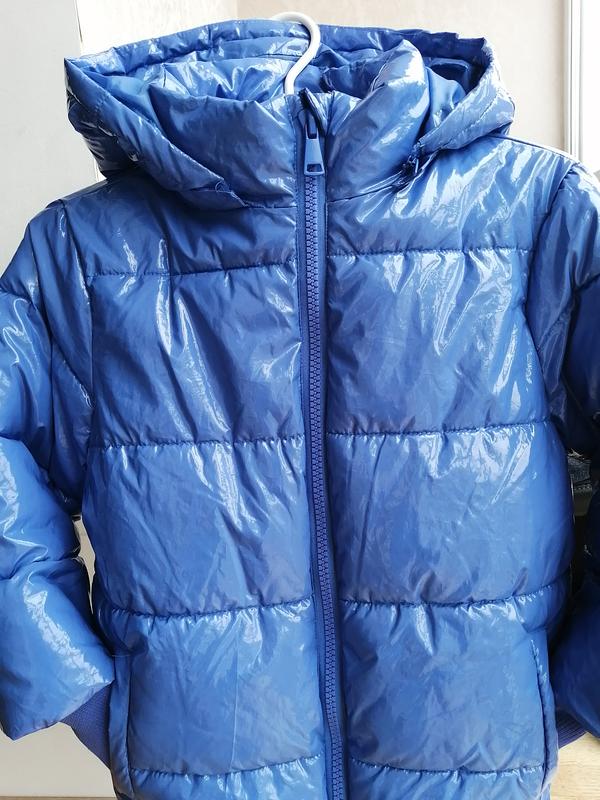 Очень красивая, стильная куртка. Ткань не промокаема и непродуваемая. Яркий васильковый цвет. В новом состоянии. Жодного дефекту. Хорошее наполнение. Если теплая зима, можно носить. Довжина55см. Рукав 48см. Пог 50см.