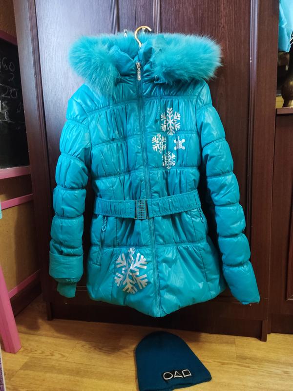 Зимняя куртка на девочку,теплая. Шапочка на флисе в подарок. Замеры: длина от плеча до низа 65 см;под подмышками 42 см; длина рукава сверху 60 см( на полный отворот, можно пикажировать); длина рукава внизу 48 см; от плеча до плеча 38 см