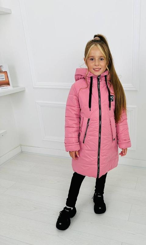 Зимова подовжена куртка для дівчинки Розміри 128-146 Наповнювач - силіконізований синтепон 300 Тканина - плащівка «Еммі» р 128 длина 68см, пог 40см, рукав от плеча 50см р 134 длина 70см, пог 42см, рукав от плеча 53см р 140 длина 73см, пог 43см, рукав от плеча 56см р 146 длина 75см, пог 44см, рукав от плеча 58см