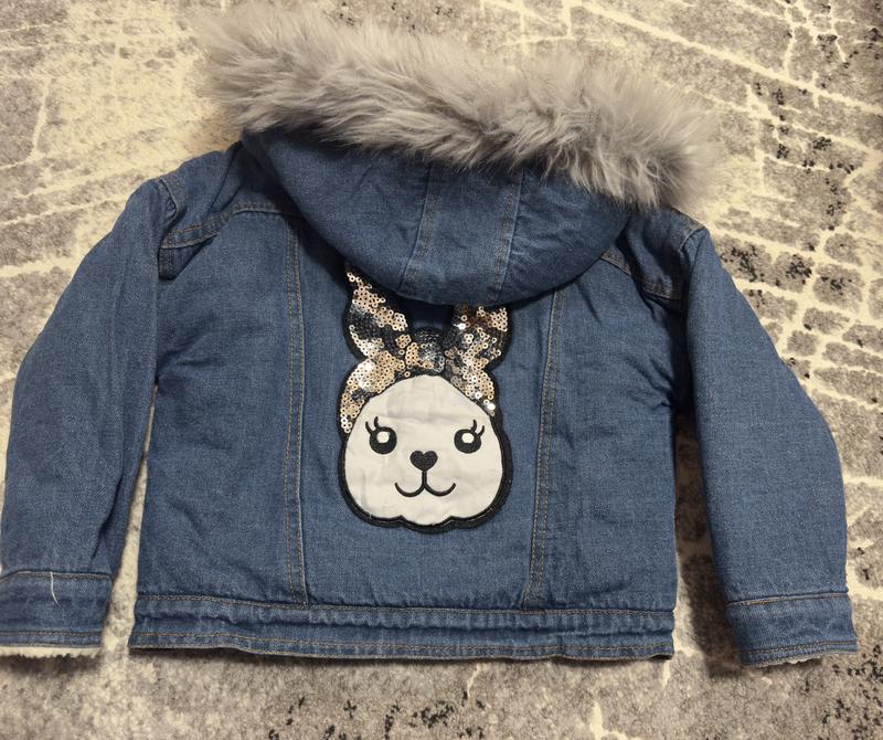 Если через,БЕЗЕЧНУЮ ОПЛАТУ ́І 15% до стоимости товара Джинсовая утепленная куртка, с натуральным капюшоном, и красивым зайчиком сзади, Стан хороший, мехо снимается Замеры на фото, оверсайз идет Мех плотный, на возраст 2- 3-4 (ориентируйтесь по замеру) Склад 100% котон. Температурный режим + 0+15. Капюшон - более теплый