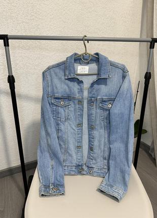 Джинсова курточка Zara В ідеальному стані Круто стильно виглядає Камера досконало не передає колір Розмір: підійде на XS-S Довжина: 54 см ПОГ: 45 см Рукав: 57 см Ціна: 350 грн.