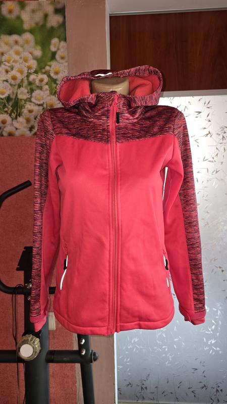 Crivit softshell куртка софтшелл с удлиненной спинкой.Стан отличный.Колир нежно-розовый.Подойдет на подростка или Xs/S женский.По выборке 10-12 лет, см.замеры.Утеплена флисом.2 карманы на замках и 2 внутренних.Низ утягивается,подвий манжет, липучках. Длж.58см,ПОГ 43см,рукав 60см со вторым манжетом,плечи 34см,спинка 60см.