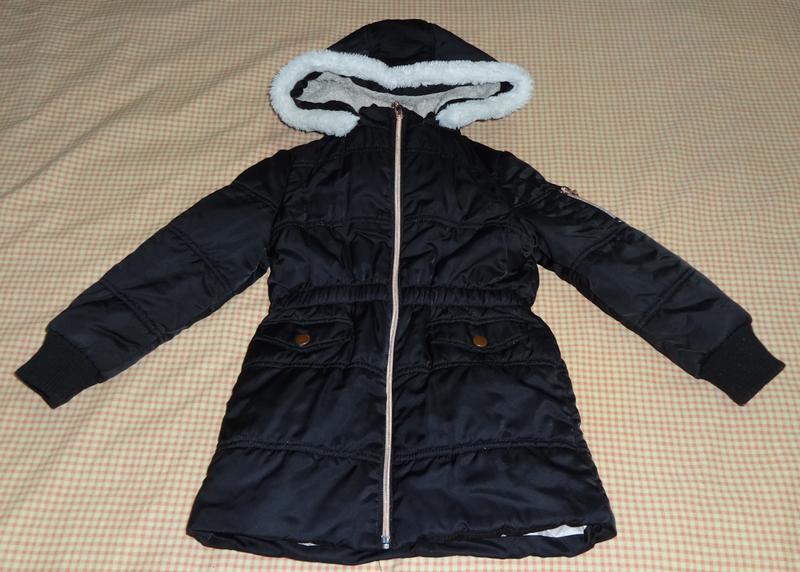 удлинённая куртка, пальто деми на 5-6 лет Куртка ветро непроницаемая, с водоотталкивающей пропиткой. Капюшон не отстёгивается, украшен искусственным мехом белого цвета. Утеплитель - однослойный стёганый синтепон. В идеальном состоянии, без дефектов. ПОГруди 35 см; ПОТалии 30 см, ПОБёдер (низа куртки) 41 см; длина изделия 54 см; длина рукава 40 см. Пересылка по Украине Укрпочтой, Новой Почтой согласно тарифов перевозчика. Предоплата на карту Приватбанка. Товар не подлежит возврату.