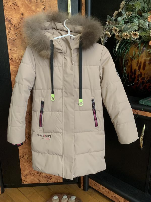 Размер 128 Может быть до 134+ очень теплое Натуральный мех на капишоне