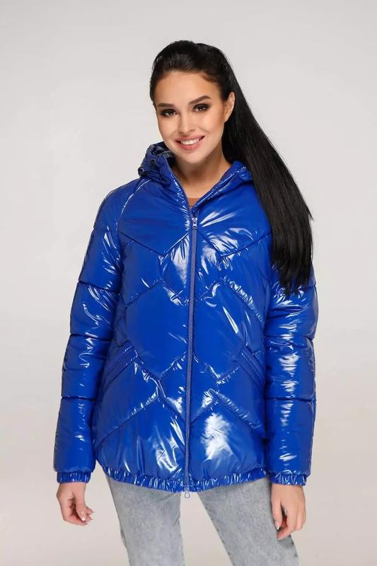 Куртка стеганая демисезонная, выполнена из ткани Лак , прямого силуэта с рукавами реглан. Капюшон- притачной, по краю собирается на кулису Ткань верха – утеплена силиконом. Подкладка - 100 % нейлон Низ рукавов и низ изделия собраны на жесткую резинку Куртка декорирована нашивкой на рукаве, фигурной стежкой «коса» Карманы – листочка Центральная застежка на двустороннюю тесьму «молния» Длина рукава 64-65 см Длина изделия по спинке 68 см