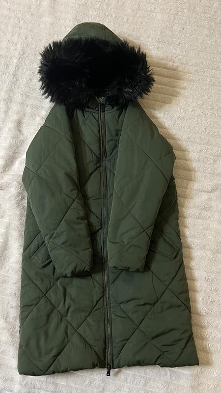 Дуже тепла подовжена куртка ,колір як на фото 1.Іде на зріст 134,можно носити з 128 до 140 .Є маленький нюанс на фото 3.