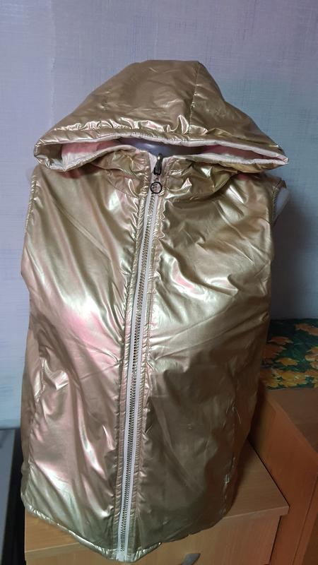 Дуже якісна жилетка двохстороння. Золотий і білий колір. 10- 11 років.