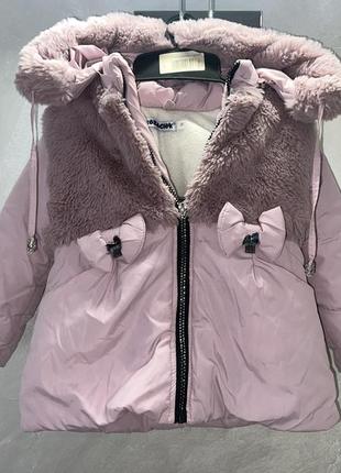 Теплая зимняя курточка для девочки на 3-4 рочки. Длина - 46 см. Рукав - 34 см. Стан идеален.