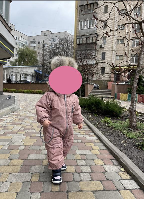 Теплый и удобный. Хорошо прилегает к шее малышки. На ножках фиксируется резинкой, и не выстирывается. Капишон снимается. Размер : 80 9-12 месяцев (оказывает производитель) НЕ маломерит, скорее есть запас. И нам было это здорово, потому что на следующую зиму мы еще чуточку в немжнаянимали. Стан - идеальный! От плеча до конца рукава +-25 От плеча до конца штанины +-70 Ширина +-35