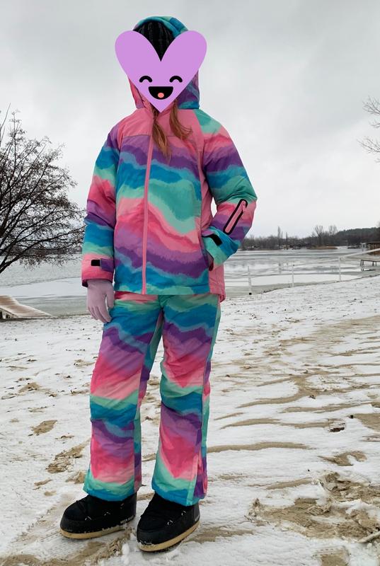 Тепла куртка з капюшоном з утепленими штанами на підтяжках Розмір 146 (10 см) Довжина куртки 60/66 см, рукав до горла 63 см, ПОГ 46 см, ПОБ 48 см. Довжина штани від грудей 118 см, крок 60 см. Довжина з підтяжками 136 см . ПОГ 37 см, ПОБ 44 см