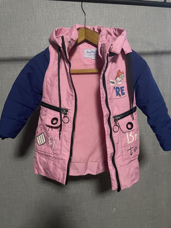 Куртка на девочку осенне-весенняя.По бирке 92см,стан отличный, но есть маленький сегмент, нужно бы вставить собачку.с молнией все хорошо! Замеры: длина-50.5см,рукав-43см, Полу обхват-31см