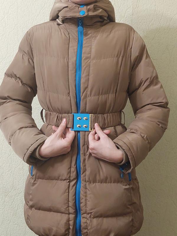 Продаю светло-коричневую зимнюю курточку для девочки в хорошем состоянии. Куртка на молнии. Молнии спереди, сзади и на карманах выполнены в синем цвете. Искусственный мех внутри, очень теплая, удлиненная. Капюшон отстегивается. Есть пояс, можно носить с поясом и без. Замеры: длина изделия = 79 см ширина изделия = 48 см длина рукава = 63 см.