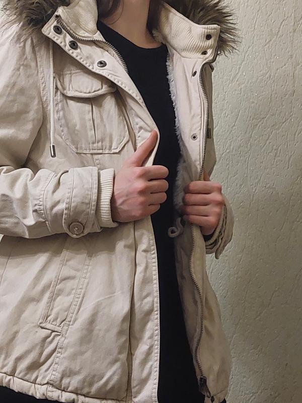 Продам детскую куртку молочного цвета. Курточка утепленная с капюшоном Теплая, фирмовая. Хороший бренд - Aeropostale. Замеры: длина изделия = 68 см ширина изделия = 48 см длина рукава = 65 см На внутренней стороне куртки до половины изделия - искусственный мех. Стяжка на поясе, съемный капюшон. Носилась мало, идеальное состояние.