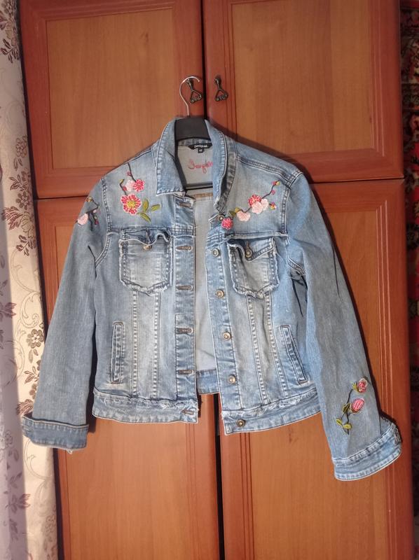 Джинсовая куртка с вышитым бисером цветочным орнаментом..красная,удобная, практичная.Размер 44.