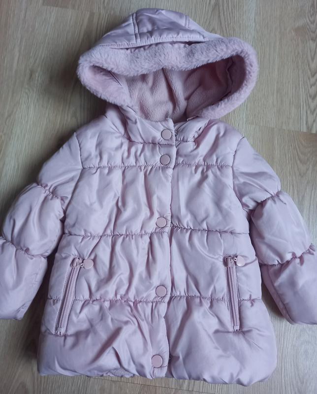 Деми курточка для девочки 12-18 мес. подклад флиска, мех на капюшоне отстегивается. Длина 38 см, плечи 26 см, рукавчик 29 см, полуобхват 31 см.